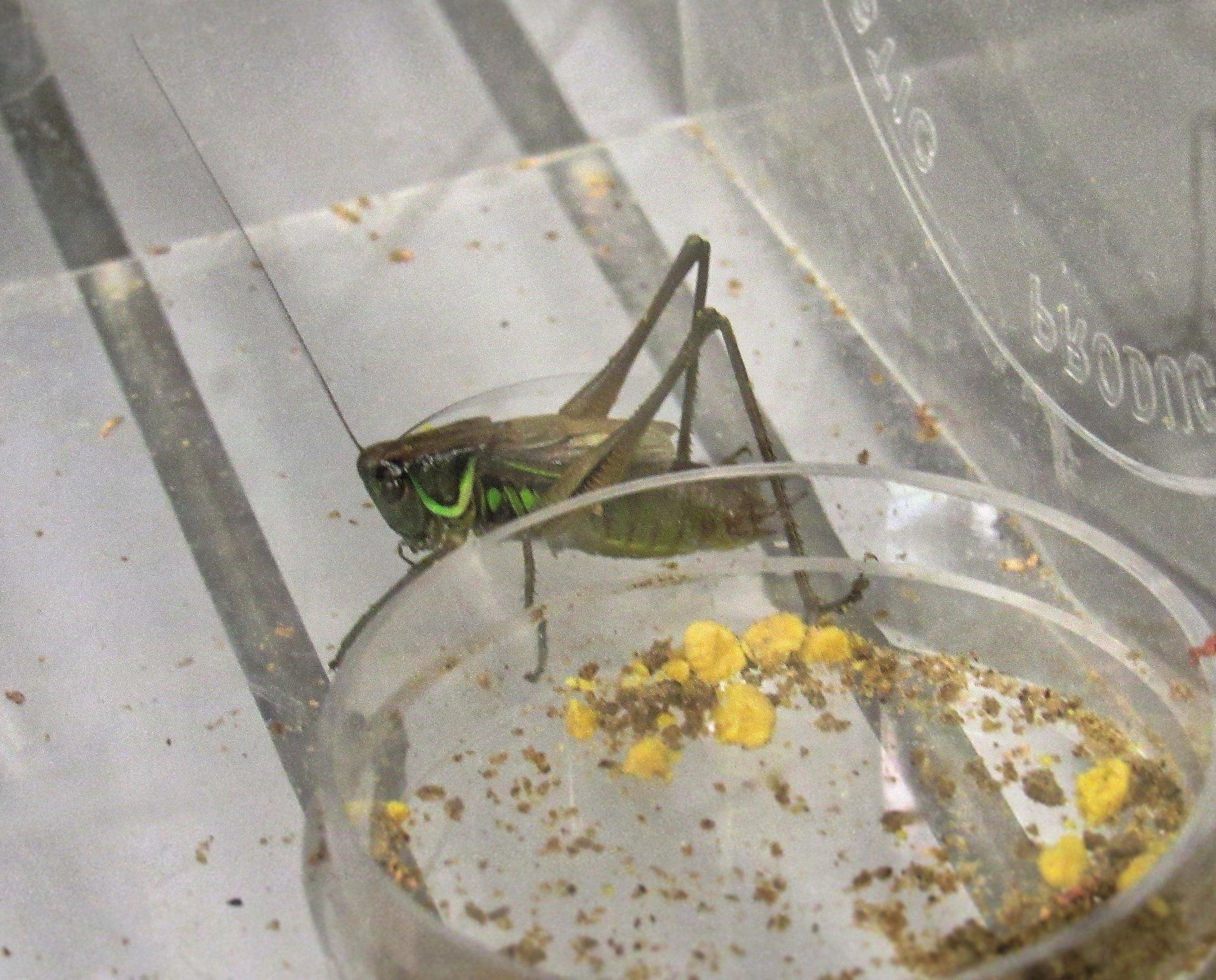 I captured insects (grasshoppers, crickets, katydids, and cicadas) that were on the UTM Nature Trail to observe their behaviour and sounds. These insects were captured and brought into the lab for further analysis.